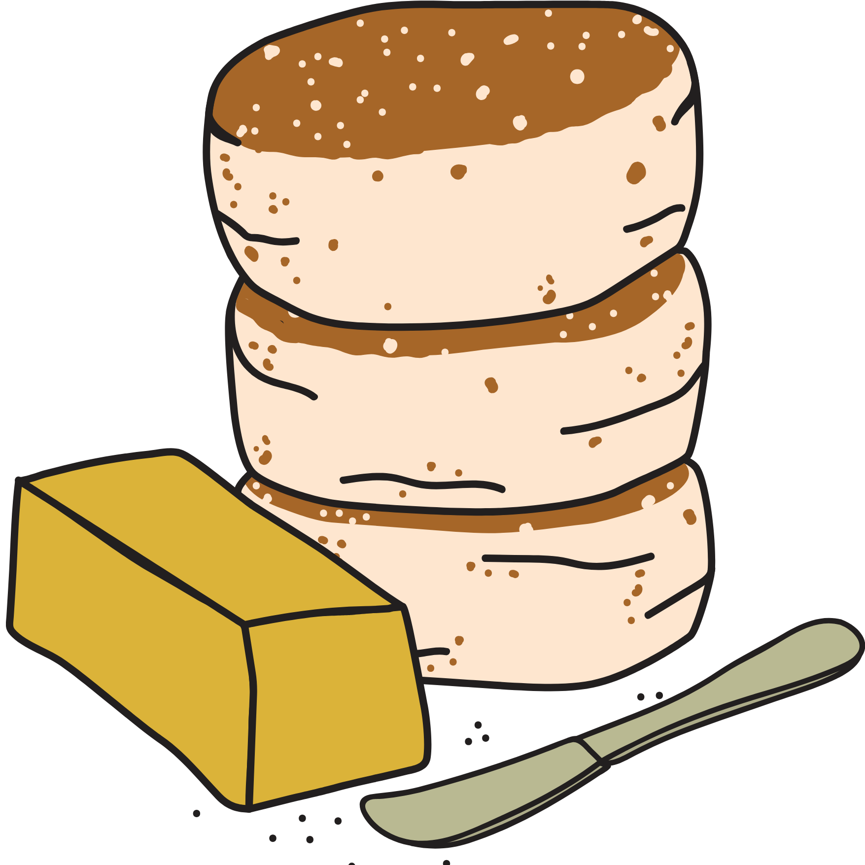 What makes them so special? Without giving away any secrets, it’s all about time. Our English Muffin dough develops during a three step fermentation process that takes 24-36 hours. With time, acetic and lactic acids build, giving our sourdough its characteristic tang and our plain its creaminess. It’s almost hard to believe we don’t use any dairy!